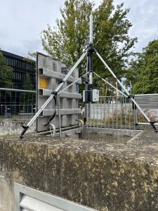 Um die Bestandsvermessung erfolgreich durchzuführen, wird der RTC360 Laserscanner in Verbindung mit einem speziellen Stativ eingesetzt. Der Scanner wird kopfüber an dem Stativ befestigt und stufenweise in den Schacht hinabgelassen.